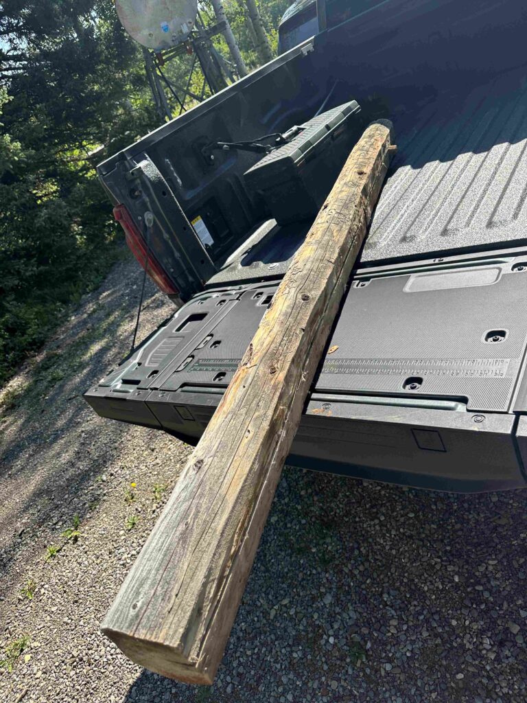 The mantle is for a fireplace in a three-season room we are adding to our house (a story for another time). We wanted something rustic, a piece with character, possibly with some local history. Did we ever get it!
