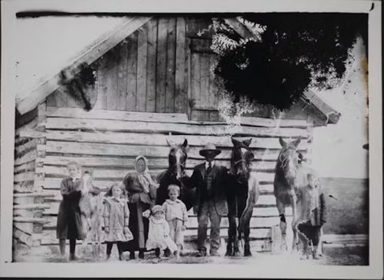 A Ukrainian family immigrated to southwest Alberta at the beginning of the 20th century and began farming in the Crow’s Nest Pass region. They constructed a modest house, approximately 10 feet by 12 feet in size, to accommodate the man, his wife, and their three young sons.