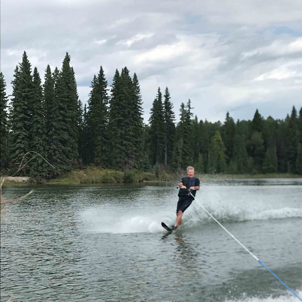 There is no photo record of my 70th birthday water skiing excursion, because it didn’t happen.  I do, however, have some nice footage of the Rocky Mountain House Hospital waiting room, and x-rays of a badly bruised and bloated leg.