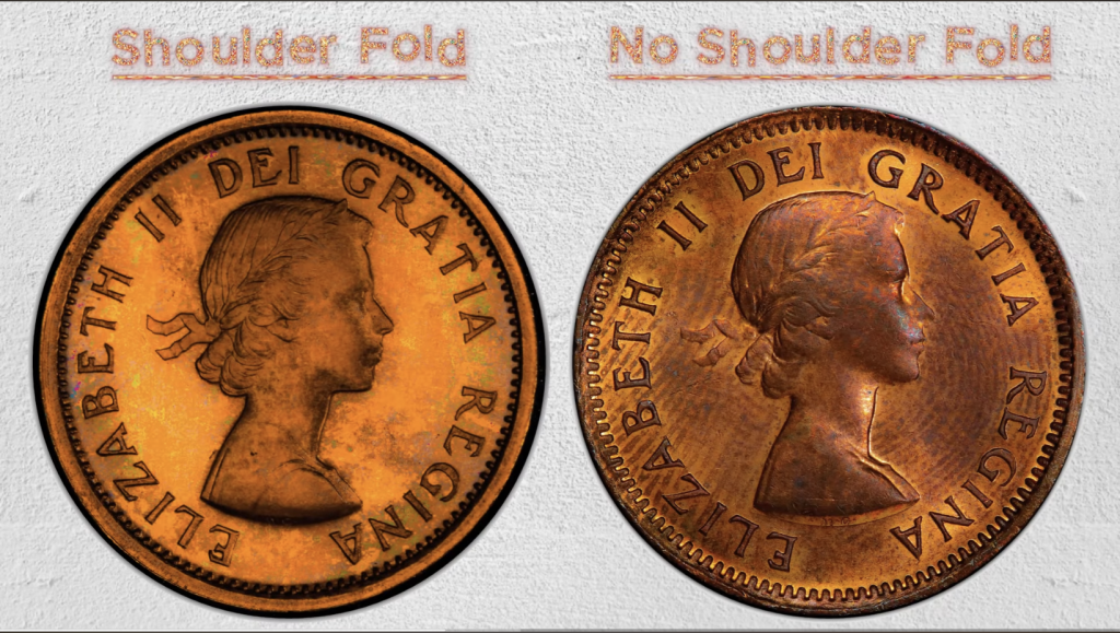 The Queen’s bra strap is missing on one of the most collectible Canadian pennies. The 1955 No Shoulder Fold Penny has a subtle flaw that makes it worth as much as $3,000, in good condition.