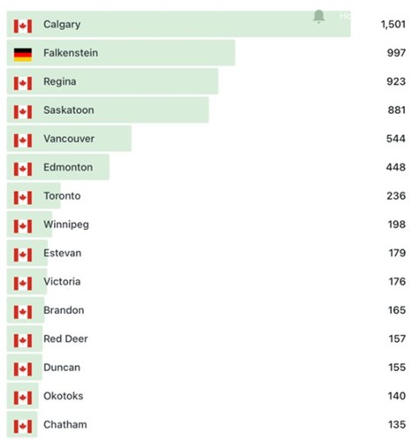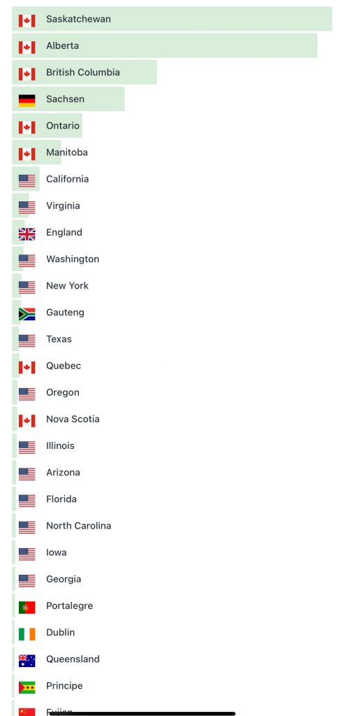 If you take another look at the Geographic table of WellWater’s audience, you will notice that fourteen of the top fifteen locations are Canadian cities, principally western Canadian. This is not surprising, given where most of our friends and family live, but check out the #2 audience location.